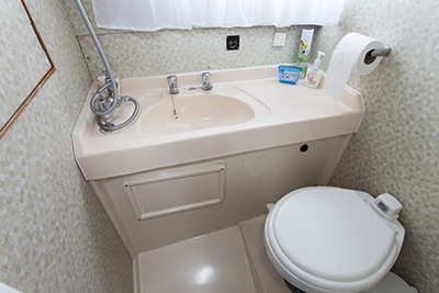There are two bathrooms, each with toilet, hand basin and shower. The aft cabin has it's own en suite bathroom, while the forward bathroom is shared by the double and bunk berths. |